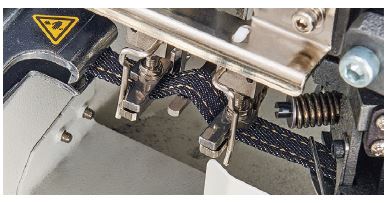 El tenedor plegable y el prensatelas en forma de portón garantizan la costura de presillas de calidad sin puntas dobladas