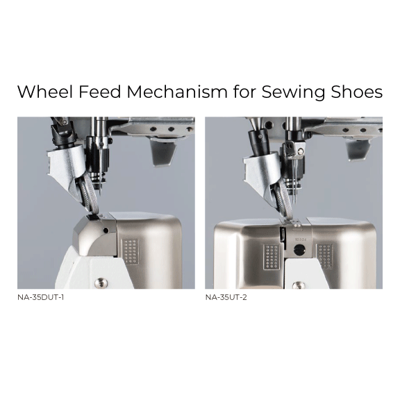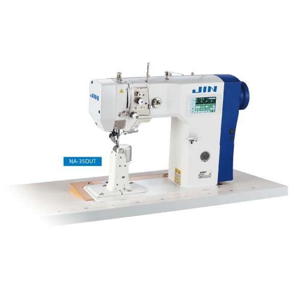 NA-35DUT-1: Direct Drive, 1-Needle, Post-Bed, Top and Bottom Wheel-Feed and Needle-Feed, Digital Stitch Length Control, Lockstitch Machine with Automatic Thread Trimmer