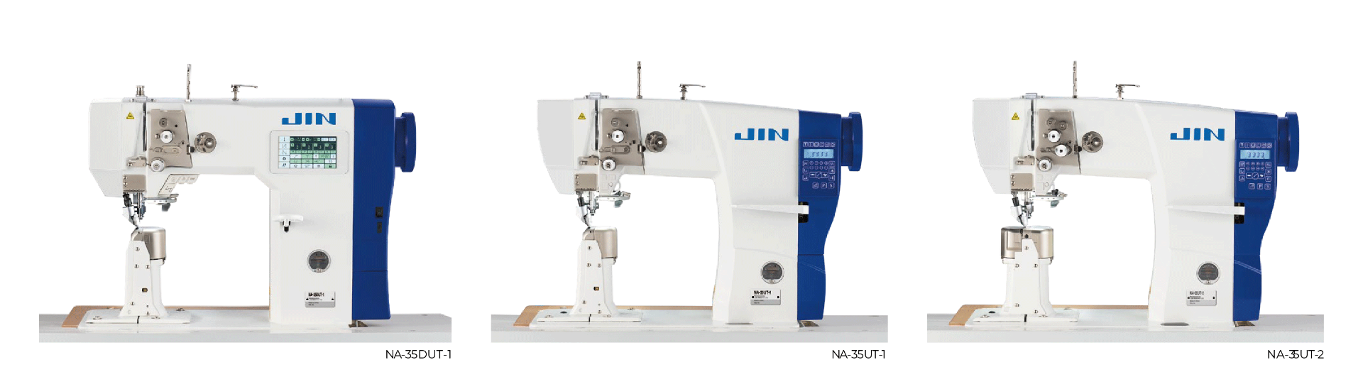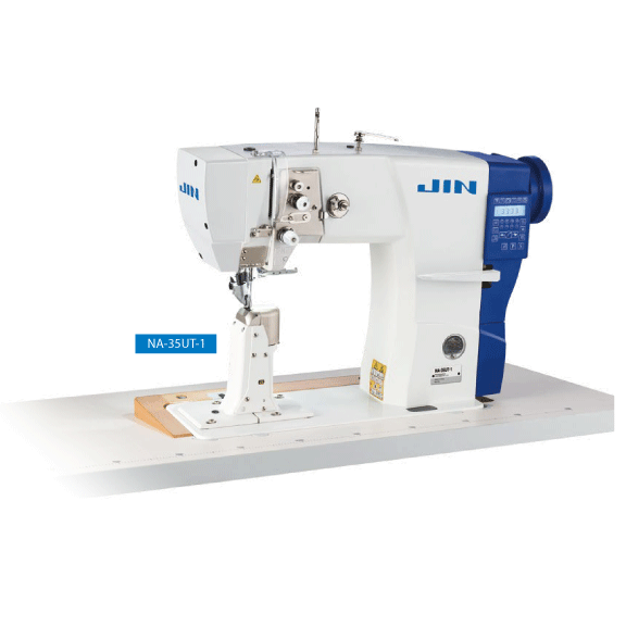 The JIN NA-35 series is best-suited for sewing shoes (sports shoes, leather shoes, casual shoes, etc.). With help from its top & bottom wheel feed mechanism to secure the material, the NA-35 Series keeps the needle entry in clear view and stably feeds even materials with multi-layered parts. The machine produces flawlessly finished seams with no slippage or irregular stitches, even when sewing slippery materials.